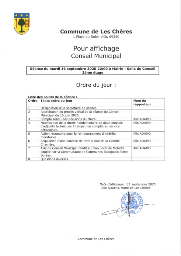 CONSEIL MUNICIPAL LUNDI 17 NOVEMBRE 2025 + Ajouter à mon Agenda Google + iCal / Outlook export 00 jours 00 heures 00 minutes 00 secondes Date Nov 17 - 18 2025 Heure 7:30 am Partagez cet événement RechercherRechercher